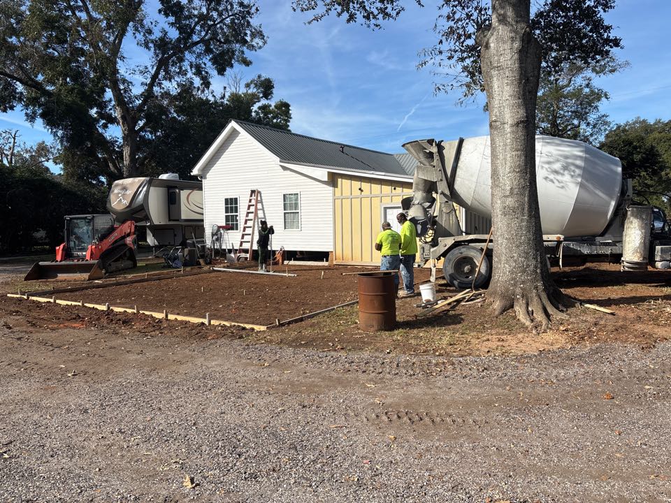 On site for a driver, safety check pouring a driveway extension and carport for a residential property in Atmore, Alabama