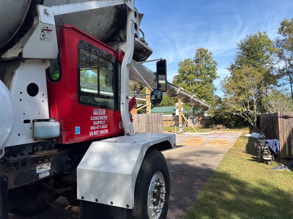 On site driver, safety check pouring a back patio for a commercial property in Atmore, Alabama.