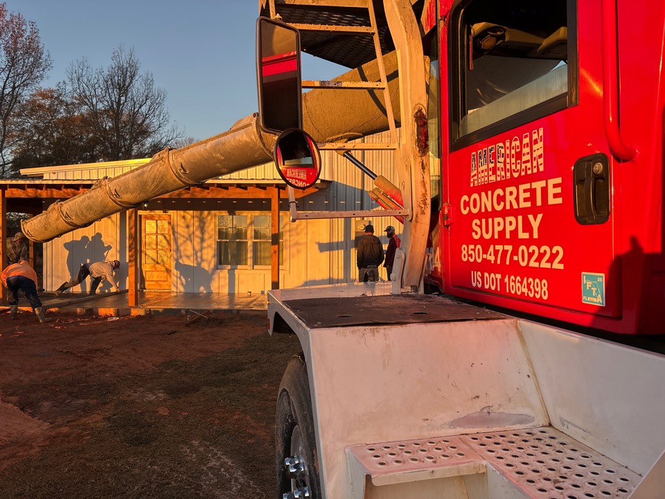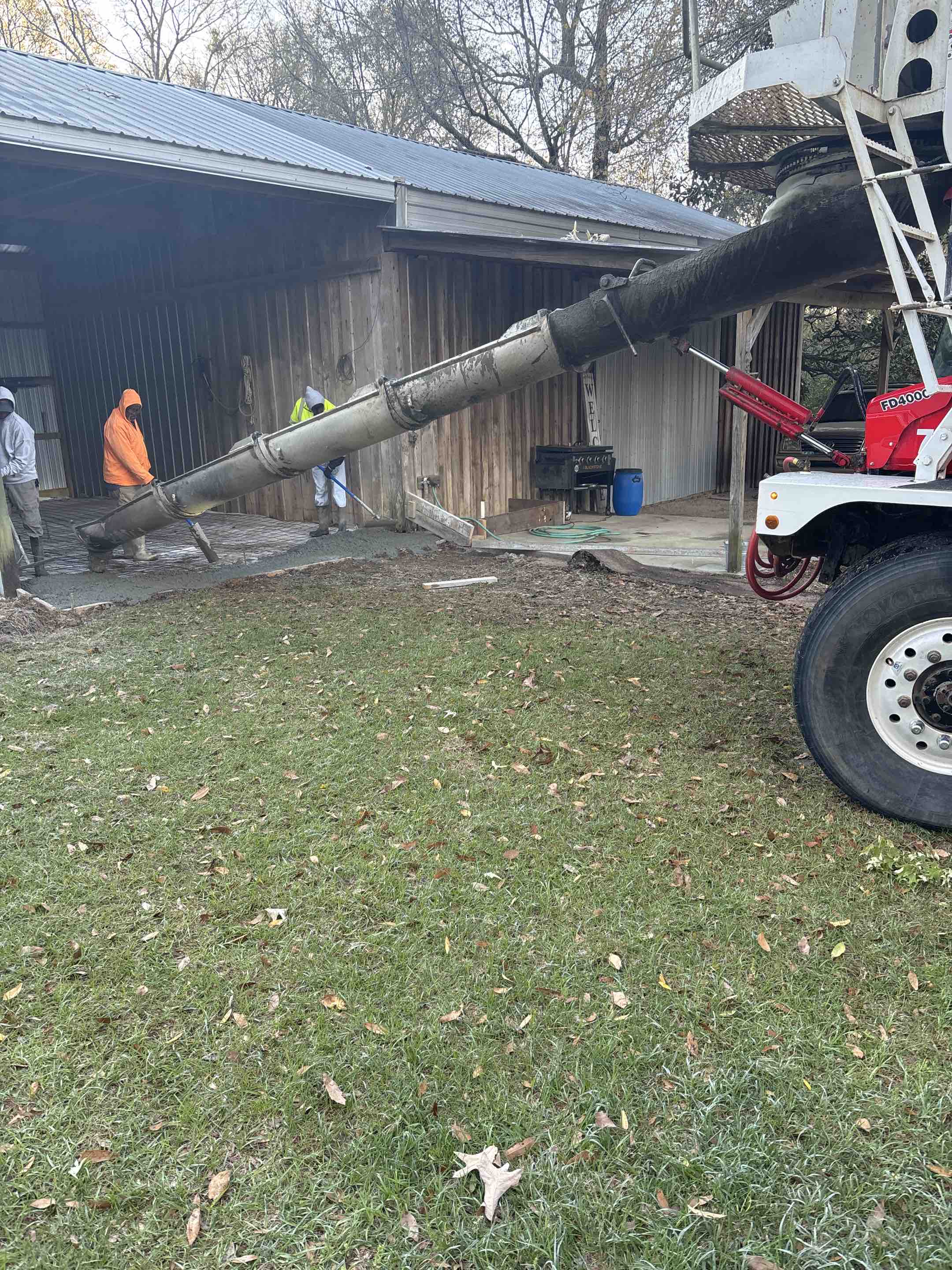 On site driver, safety check pouring a small slab in a barn in Perdido, Alabama