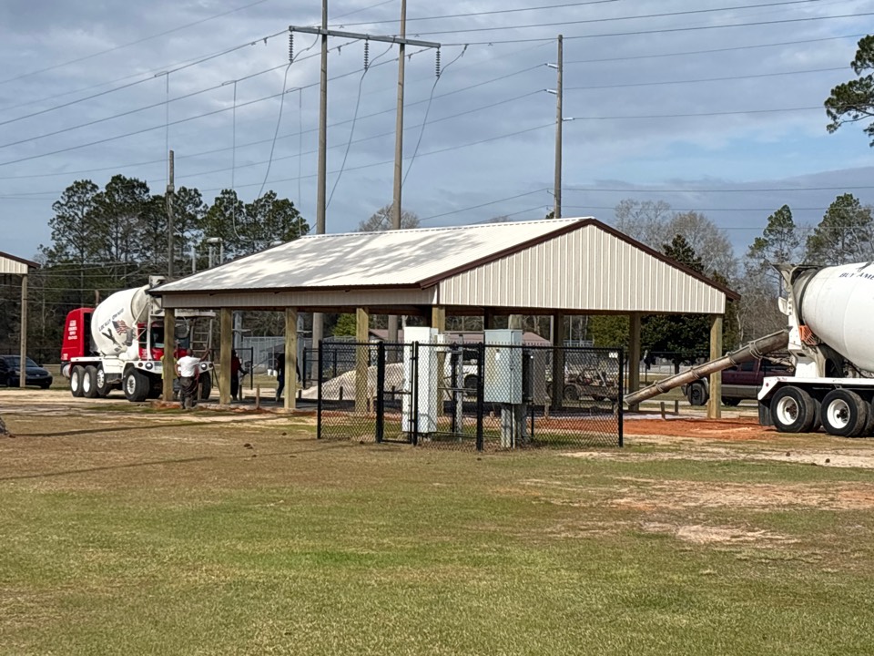 On site in Atmore, Alabama for driver safety check pouring 5 yards of concrete for a commercial project for Tom Byrne Park.