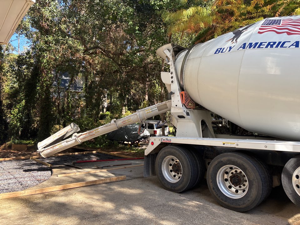 Driver ride along for a driveway pour for a residential property in Lake Forest subdivision in Daphne, Alabama