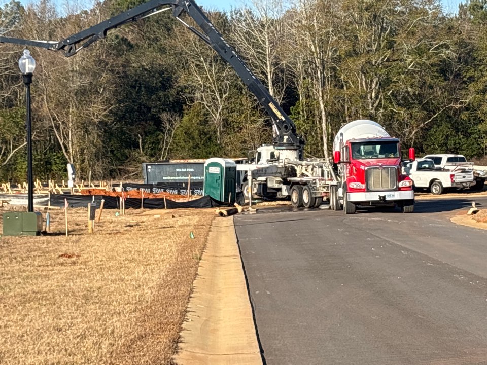 On site safety check for a driver pouring concrete slab for a commercial home builder in Fairhope Alabama.