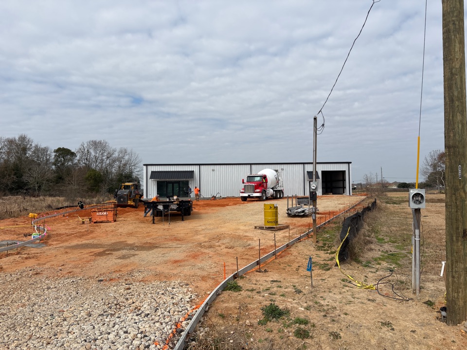 On site in Somerdale, Alabama pouring parking slab for commercial property.